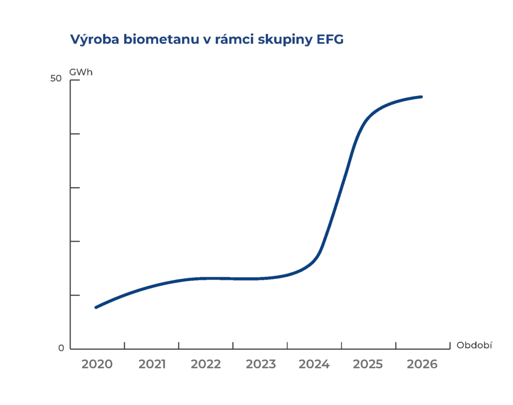 Když EFG před deseti lety začala rozvíjet projekt výroby biometanu v bioplynové stanici v Rapotíně, jednalo se o podnikatelsky odvážný krok do tehdy málo rozvinutého odvětví bez jakékoliv legislativní podpory. Postupně se však kolem něj začal formovat širší ekosystém aktivit, který dnes zahrnuje svoz a zpracování biologicky rozložitelných odpadů, výrobu biometanu, elektřiny a tepla, výstavbu, servis a technologickou podporu bioplynových stanic i obchodování s vyrobenými energiemi. Právě propojení těchto oblastí a jejich vzájemná synergie se staly základem dlouhodobého růstu skupiny a její konkurenční výhody. V řadě oblastí EFG stála u samotného vzniku trhu i regulatorního prostředí.